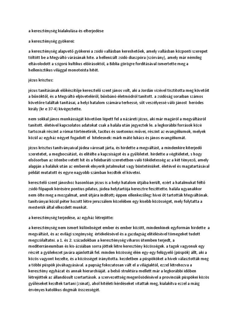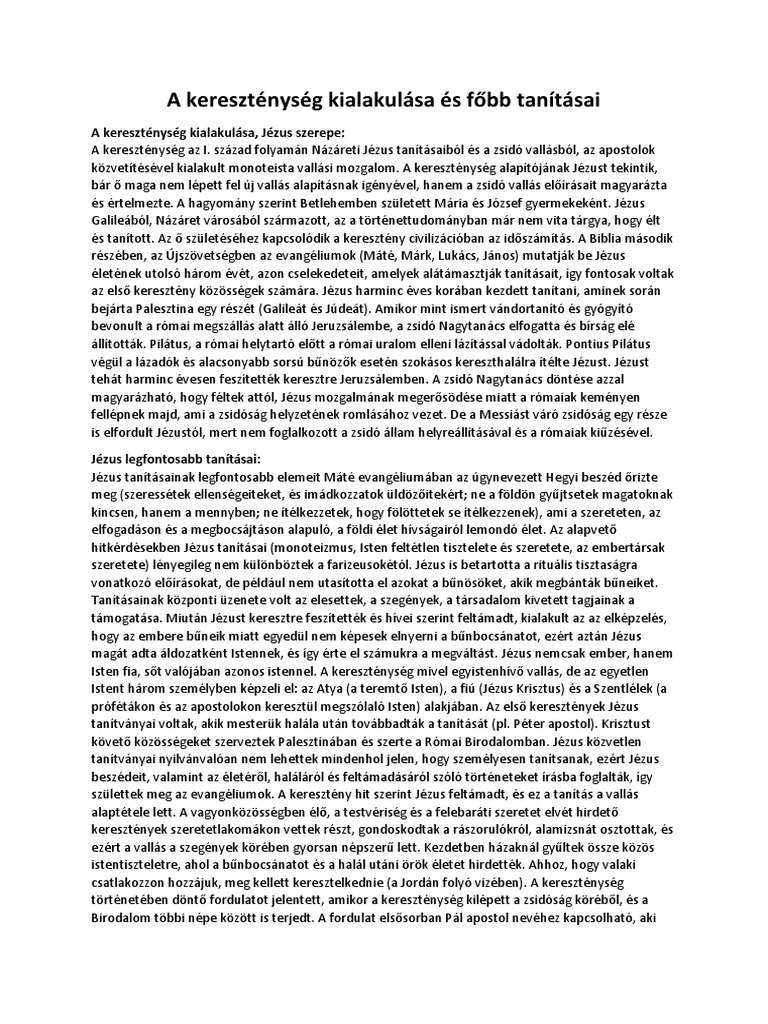 Kereszténység kialakulása és főbb tanításai. A rómaiak különbséget tettek az isteneknek járó szent napok és a mindennapok között. A kereszténység kialakulása és jézus élete a történettudománynak is fontos eseményekkel teli és következményekben gazdag fejezete. A kereszténység kialakulása tanításai i. A biblia forrásként értelmezhető a korabeli dokumentumok mára egész korszakok értelmezését és feltárást segítik.