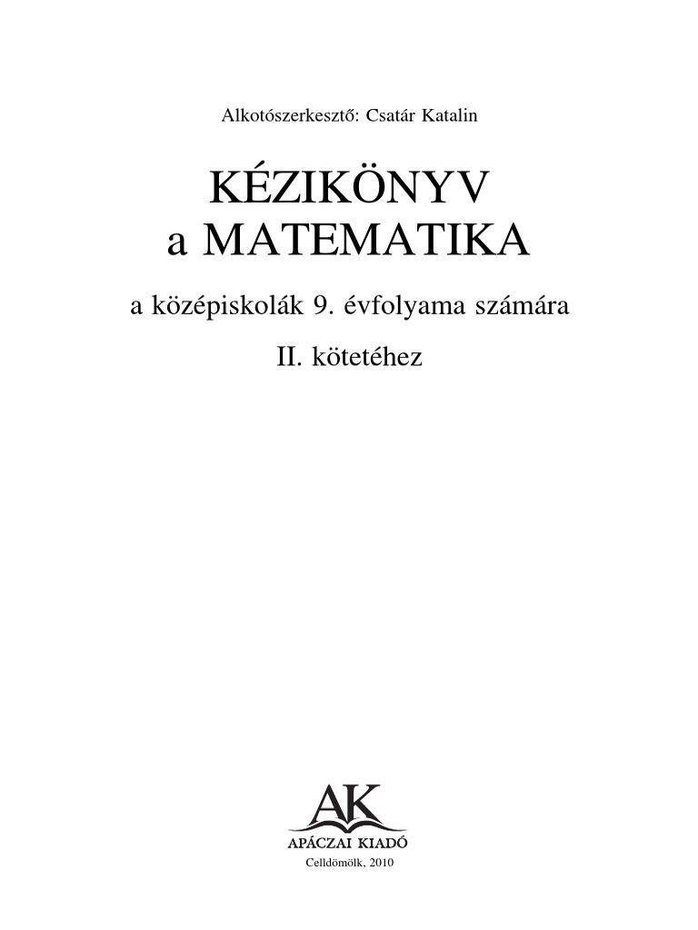 Matematika 9 osztály megoldások. Matematika tananyag kilencedik osztályos diákok számára. Imum 0 maximum 7 meccset játszhat. Szintfelmérő feladatok az 9 10. A feladatgyűjtemények külön 9 es és 10 es kötetként is megvásárolhatók amelyek a megoldásokat is tartalmazzák.