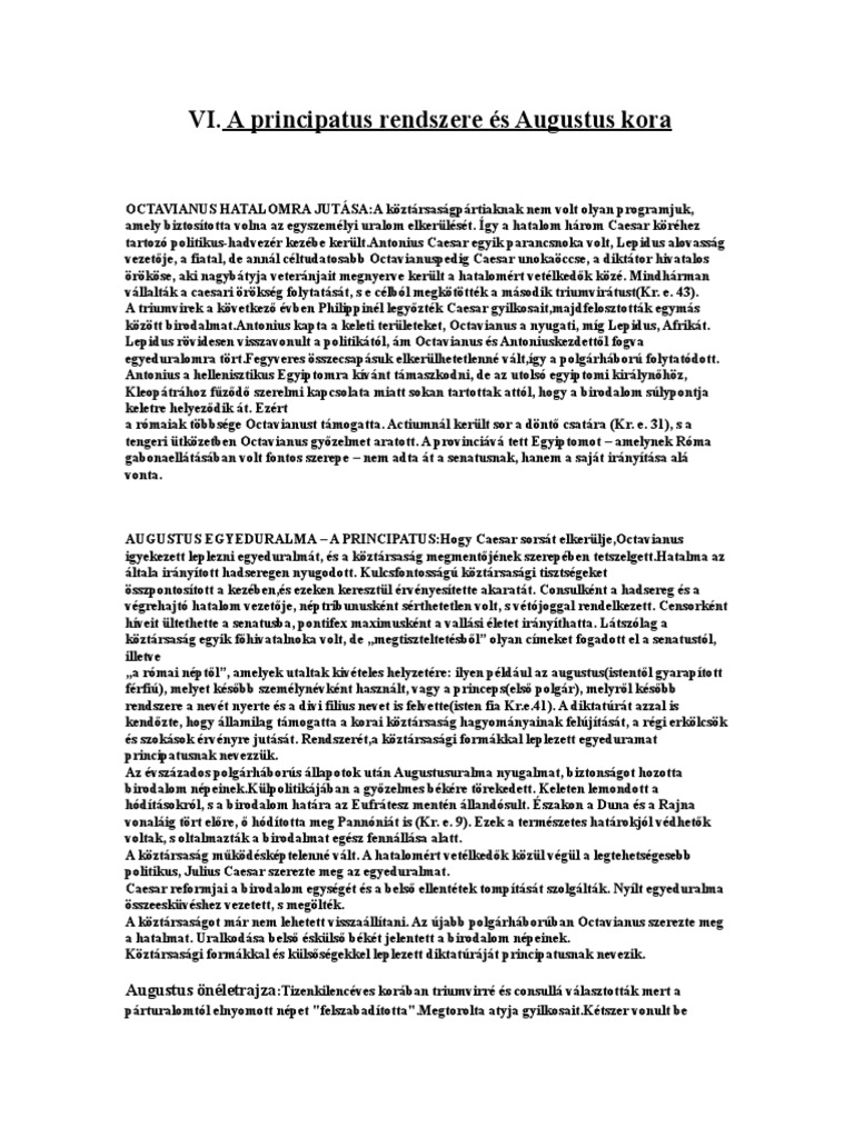Az ókori keleti civilizációk vallási és kulturális jellemzői. Augustus és a principatus megalapítása a több évtizeden keresztül zajló polgárháborúknak augustus hatalomra jutása vetett véget. Történelem érettségi témakörök vázlata.